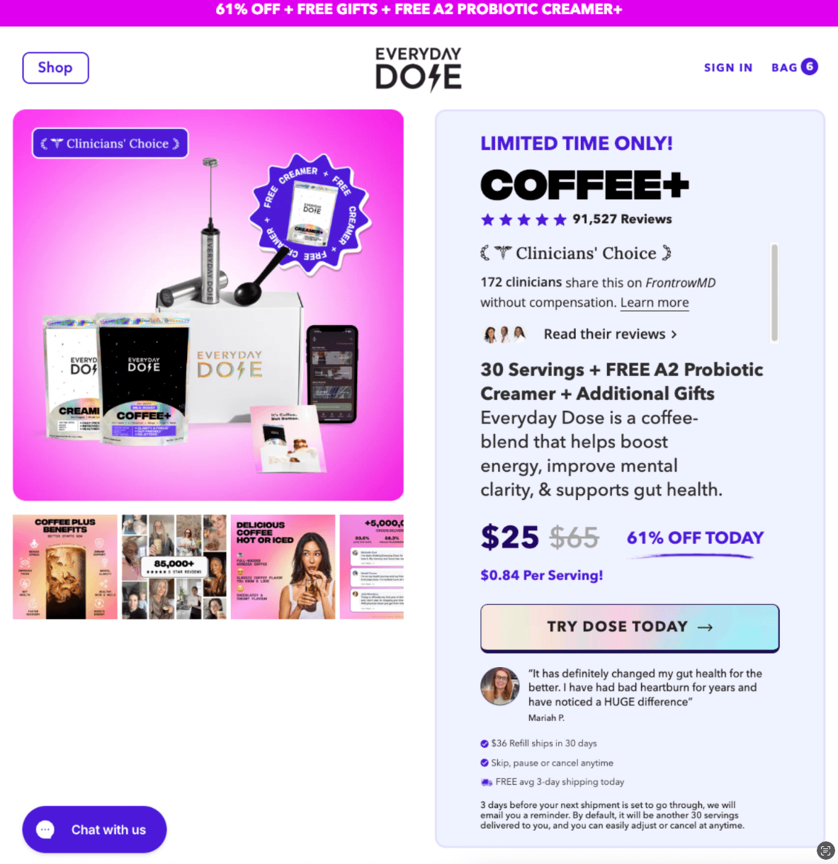 Look At Everyday Dose below… their offer is 61% OFF and 5 FREE gifts. Wild.