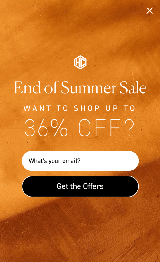 Their end-of-sale pop-ups are smart, timely, and optimized for list growth—not just sales.
