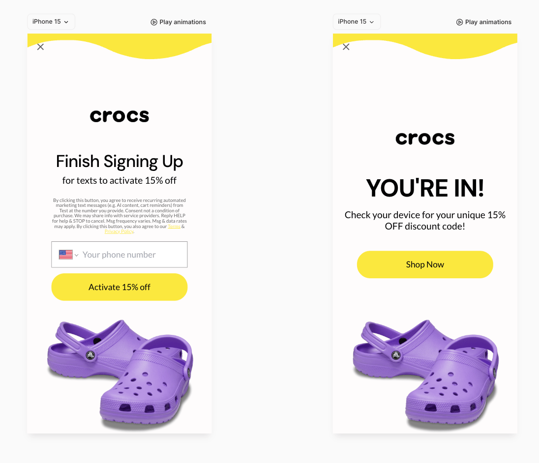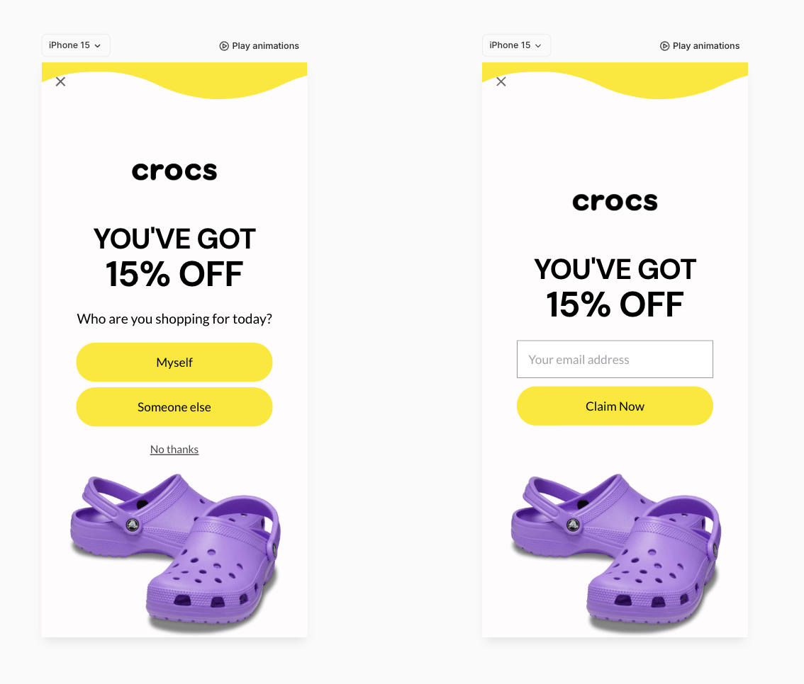 Clear headline: “You’ve got 15% off” — instantly visible