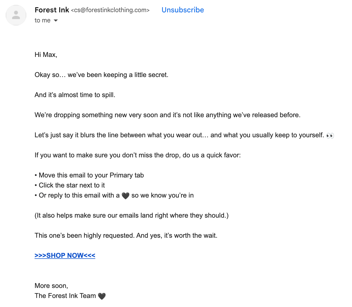 Then the full product drop email goes out to everyone else.